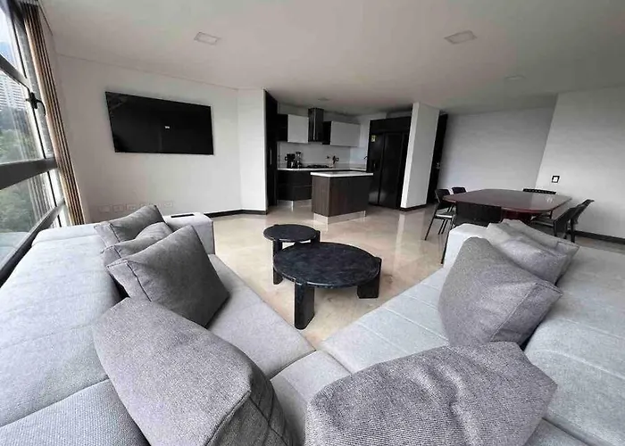 Overlooking the garden, the spacious 140 m² 802, Amazing Apartment In Heart Of El Poblado + View! Medellin is nearly 25 minutes' walk from El Tesoro Shopping Park in Medellin. Guests can lounge by a private swimming pool before taking a cooling dip.